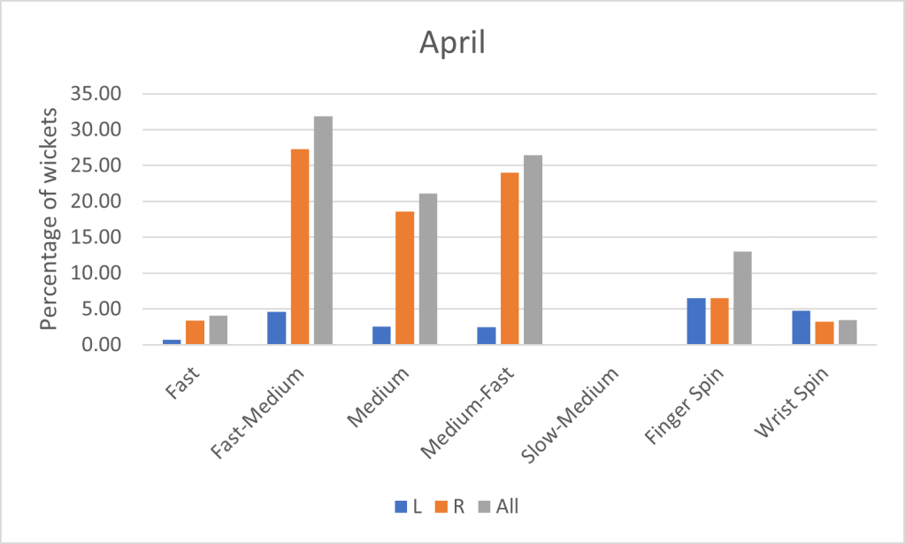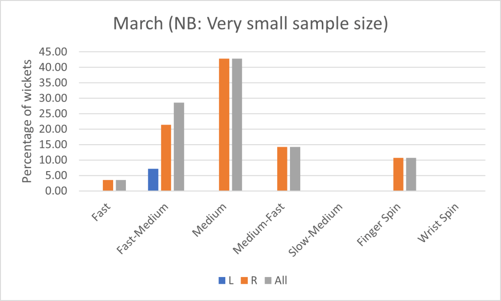 March 29, 2022March 29, 2022rossenglish Wickets Falling to a Bowler by Month: County Championship 2001-2021 Months are by start of match. Share this: Click to share on X (Opens in new window) X Click to share on Facebook (Opens in new window) Facebook Like Loading... Related
